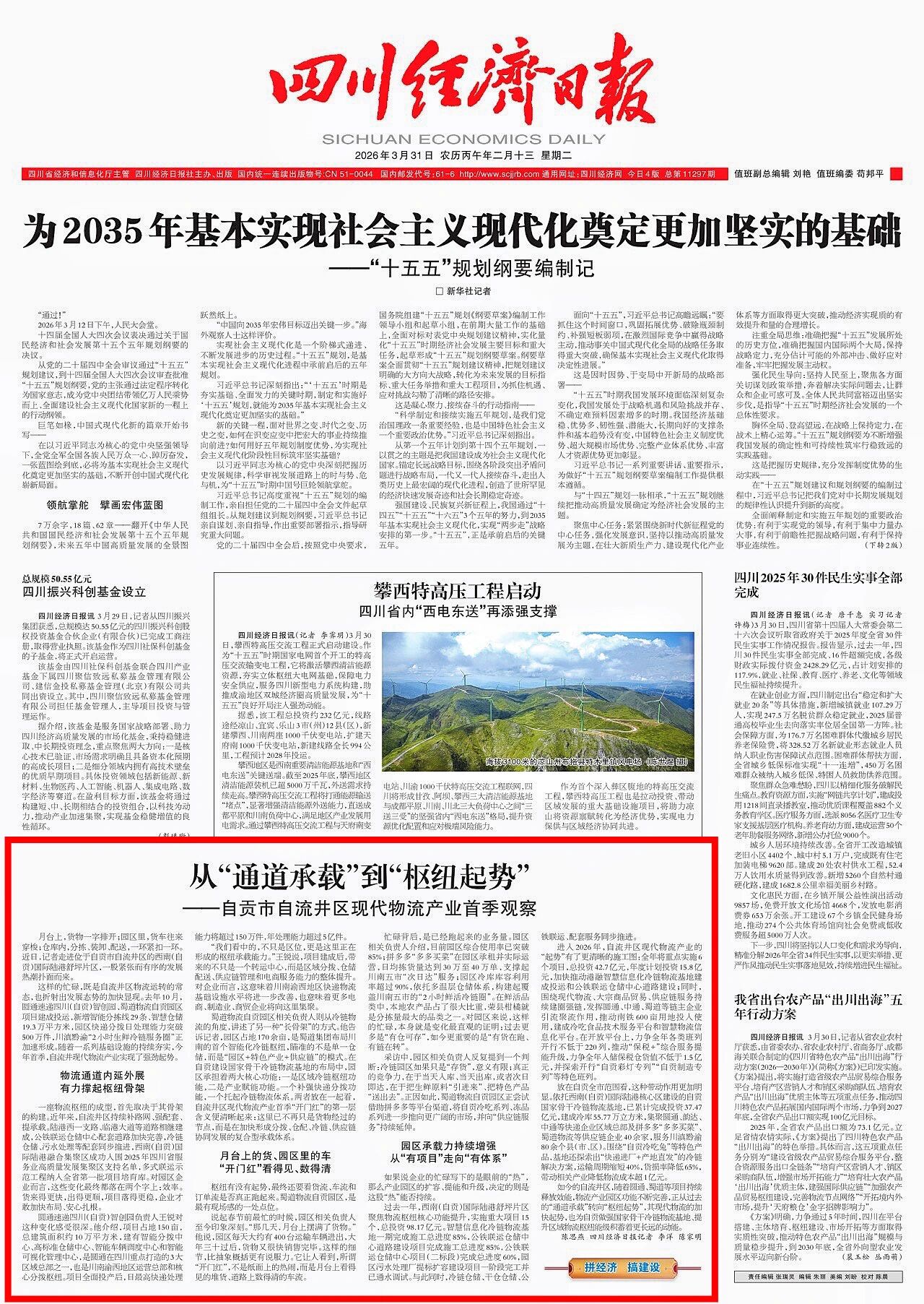 四川经济日报关注!黄金城集团物流自贡园区硬核运营赋能自贡物流产业枢纽起势